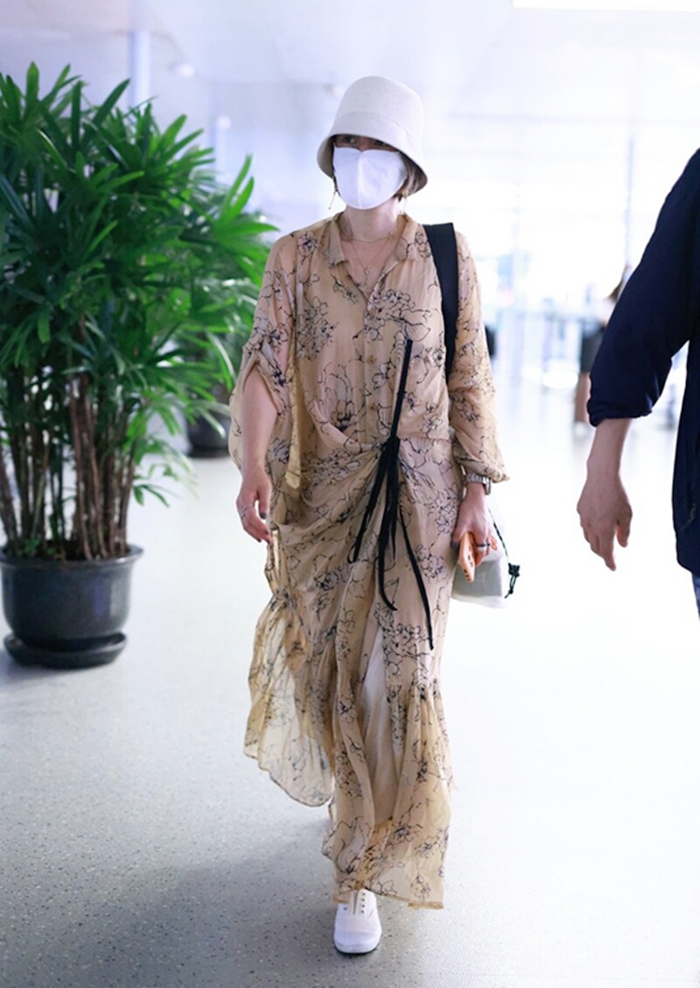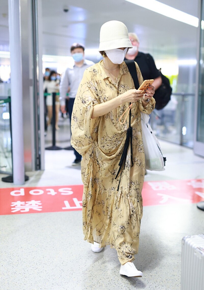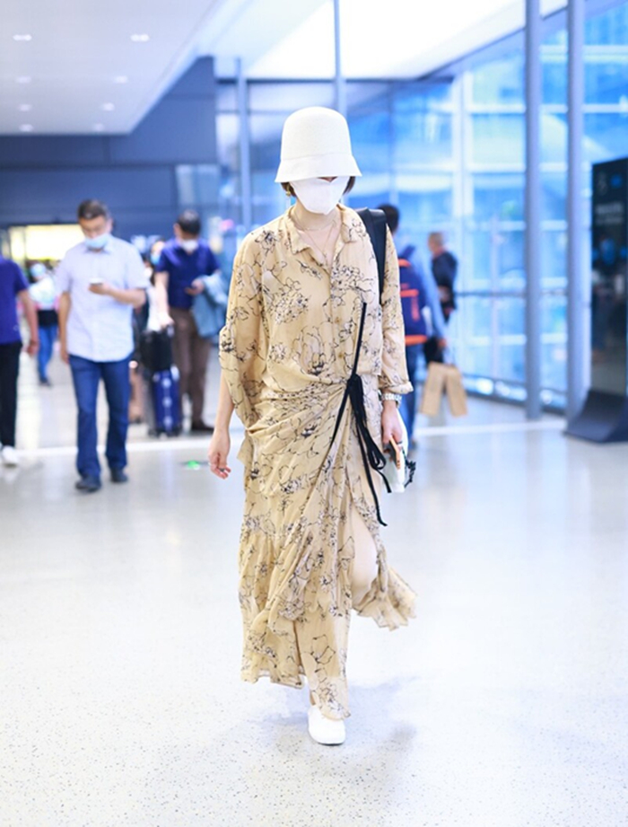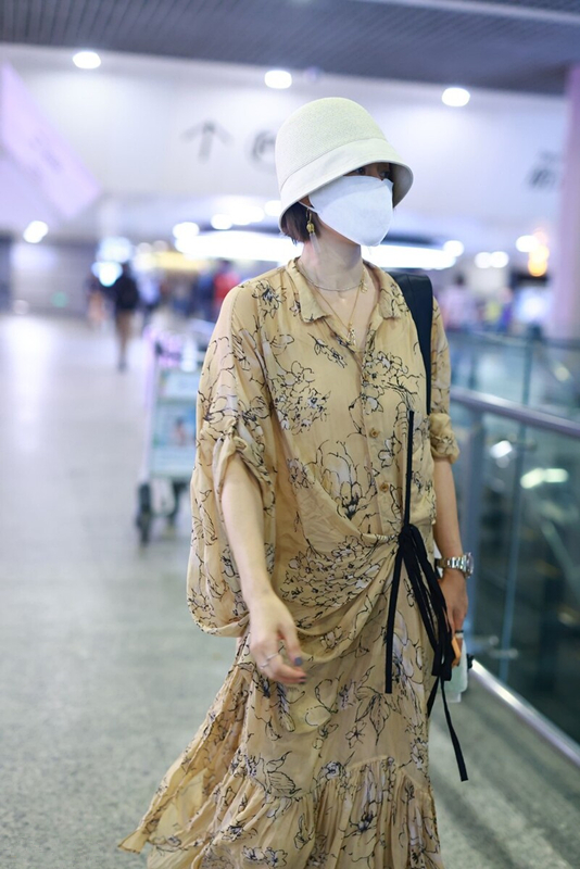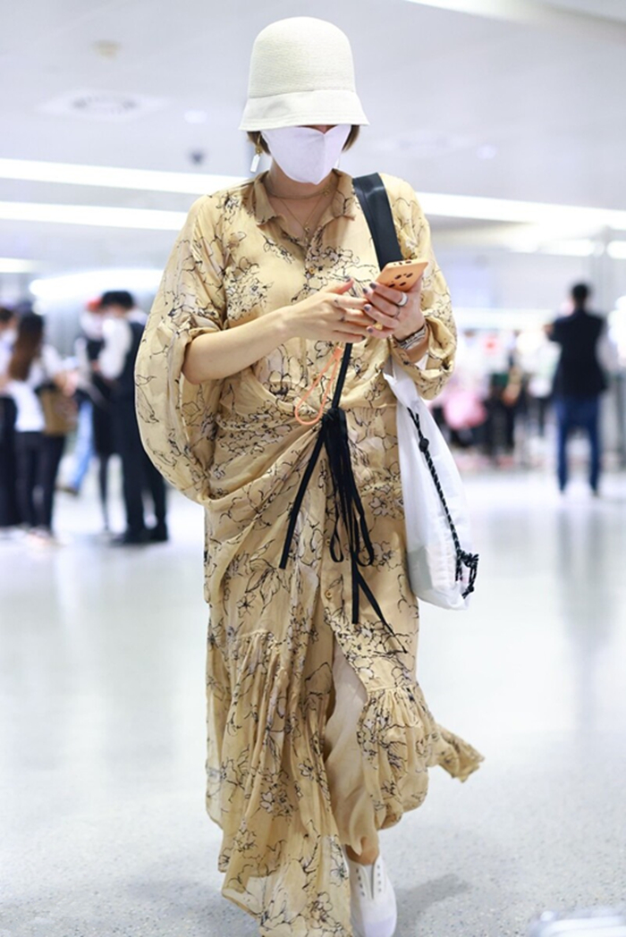 马伊琍逃开拔福发胖年龄银河娱乐官网8266c,穿印花连衣裙走机场高档减龄,好意思丽大气