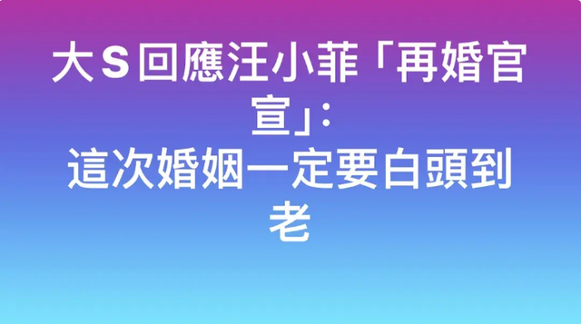 得知汪小菲要再婚,身为前妻的大S也托付牙东谈主,上前夫奉上真诚的道喜,示意“此次婚配一定要白头到老”。